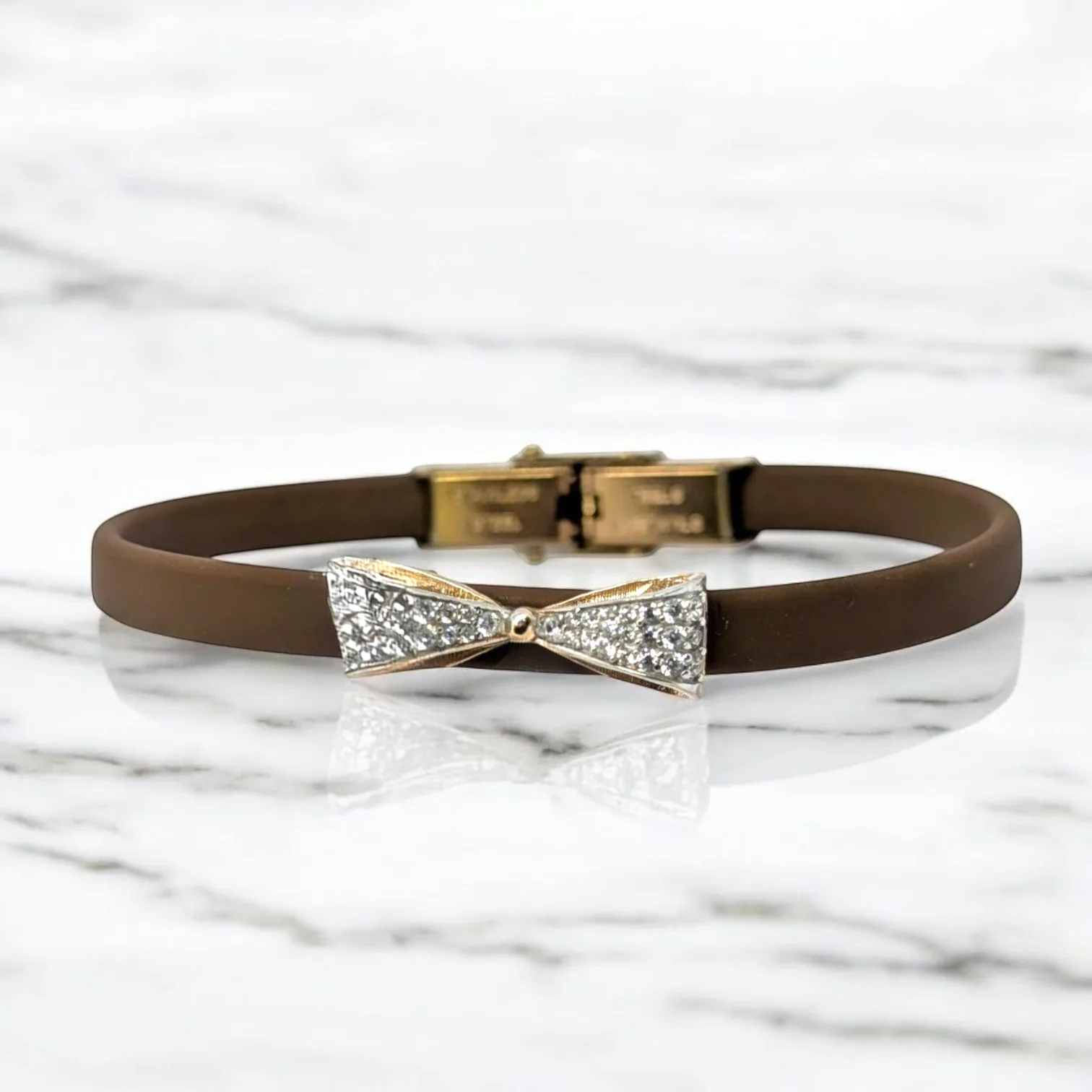 Chic Bow Bracelet – 925 Silver Grace with Chocolate Brown Elegance